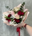 Букет, який ви отримаєте може відрізнятися від представленого на фото. Він буде виконаний в такому пакуванні, такої форми і кольору, але квіти відрізнятимуться в залежності від сезону і наявності на вітрині. Перед зборкою букету ми вишлемо фото на погодження складу букету.