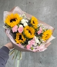 Букет, який ви отримаєте може відрізнятися від представленого на фото. Він буде виконаний в такому пакуванні, такої форми і кольору, але квіти відрізнятимуться в залежності від сезону і наявності на вітрині. Перед зборкою букету ми вишлемо фото на погодження складу букету.