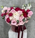 Композицію, яку ви отримаєте може відрізнятися від представленої на фото. Вона буде виконана такої форми і кольору, але квіти відрізнятимуться в залежності від сезону і наявності на вітрині. Перед зборкою композиції ми вишлемо фото на погодження складу.