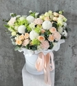 Композицію, яку ви отримаєте може відрізнятися від представленої на фото. Вона буде виконана такої форми і кольору, але квіти відрізнятимуться в залежності від сезону і наявності на вітрині. Перед зборкою композиції ми вишлемо фото на погодження складу.