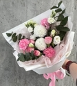 Букет, який ви отримаєте може відрізнятися від представленого на фото. Він буде виконаний в такому пакуванні, такої форми і кольору, але квіти відрізнятимуться в залежності від сезону і наявності на вітрині. Перед зборкою букету ми вишлемо фото на погодження складу букету.
